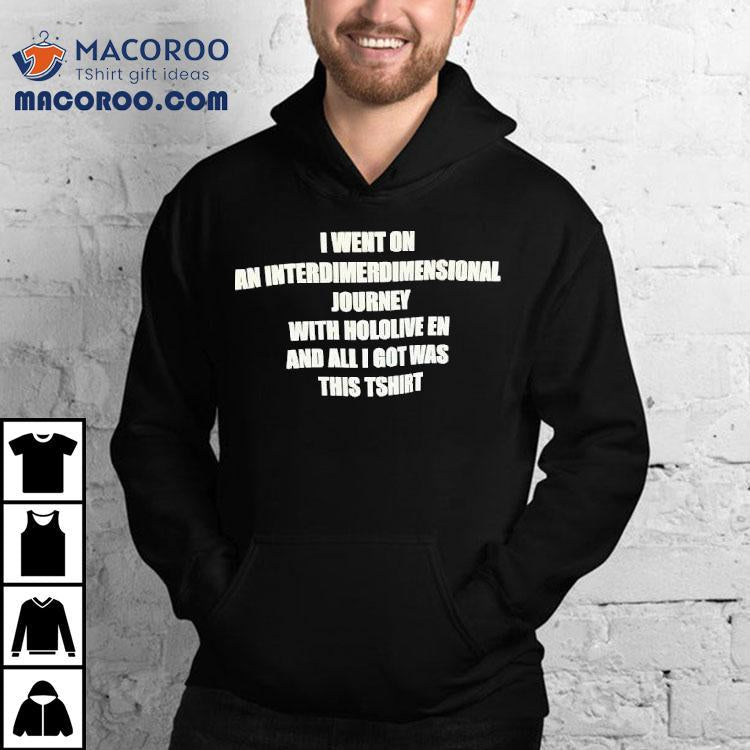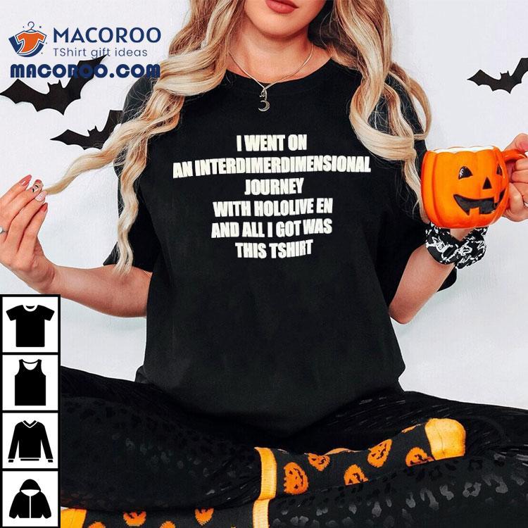 Chic comfort, everyday fashion with I Went Zon An Interdimerdimensional Journey With Hololive En And All I Got Was This Shirt, "Join me on a wild and hilarious ride through different dimensions with the quirky and lovable Hololive EN members. From battling giant robots to singing karaoke with aliens, it's an adventure unlike any other. And all I have to show for it is this limited edition Hololive EN shirt. Let's go zon!"