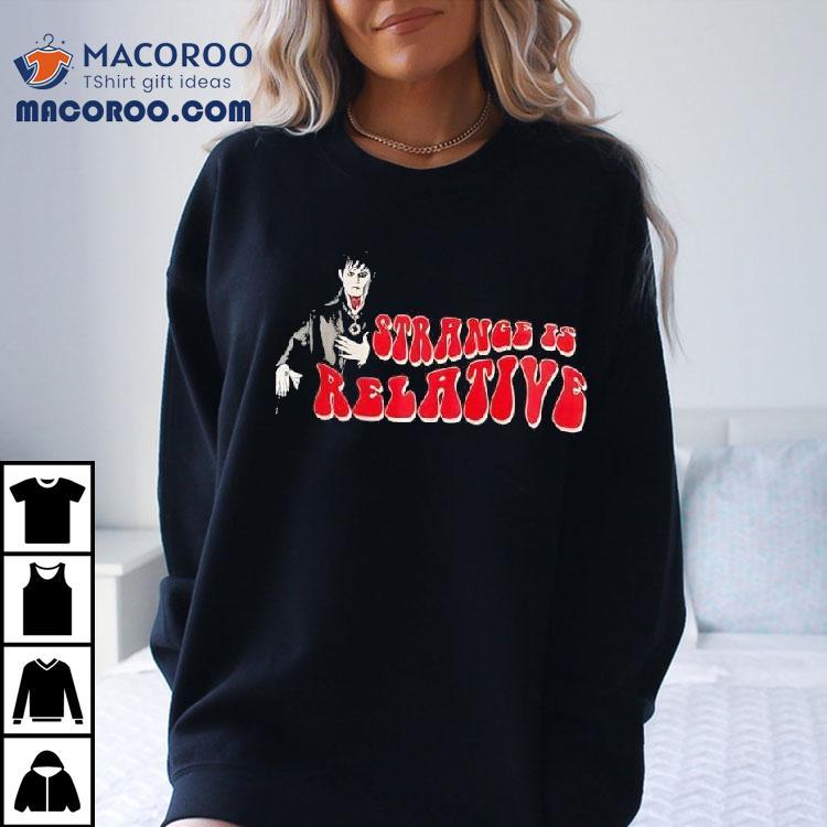 Chic simplicity, maximum comfort with Johnny Depp Dark Shadows Strange Is Relative Movie Promo Shirt, johnny Depp fans, get ready to showcase your love for the actor and his iconic role in Dark Shadows with this limited edition Strange Is Relative movie promo shirt. Showcasing the mysterious and eccentric vibe of the film, this shirt is a must-have for any Depp enthusiast.