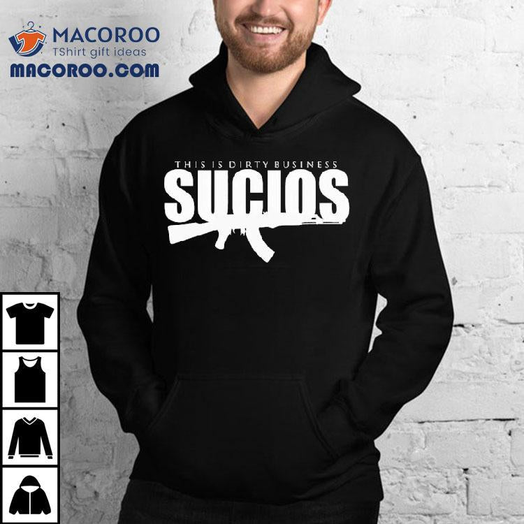 Effortless charm, everyday wear with King Lil G Sucios This Is Dirty Business Logo Shirt, step into the gritty world of hip-hop with King Lil G's newest piece of merch, the Sucios This Is Dirty Business Logo Shirt. Show off your love for the West Coast rapper and his raw lyrics with this bold and stylish shirt.