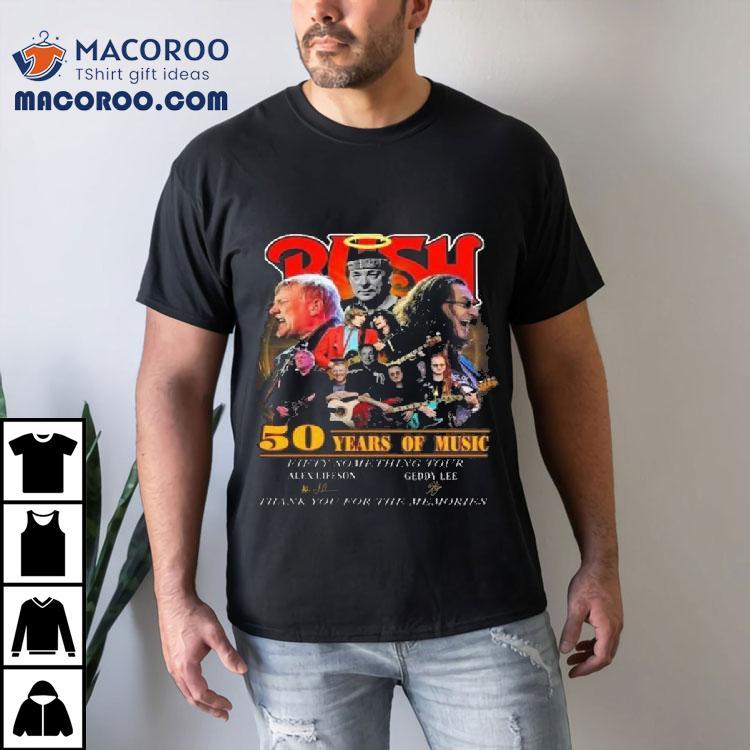 Rush Band 50 Years Of Music Fifty Something Tour Alex Lifeson Geddy Lee Signatures Thank You For The Memories Shirt