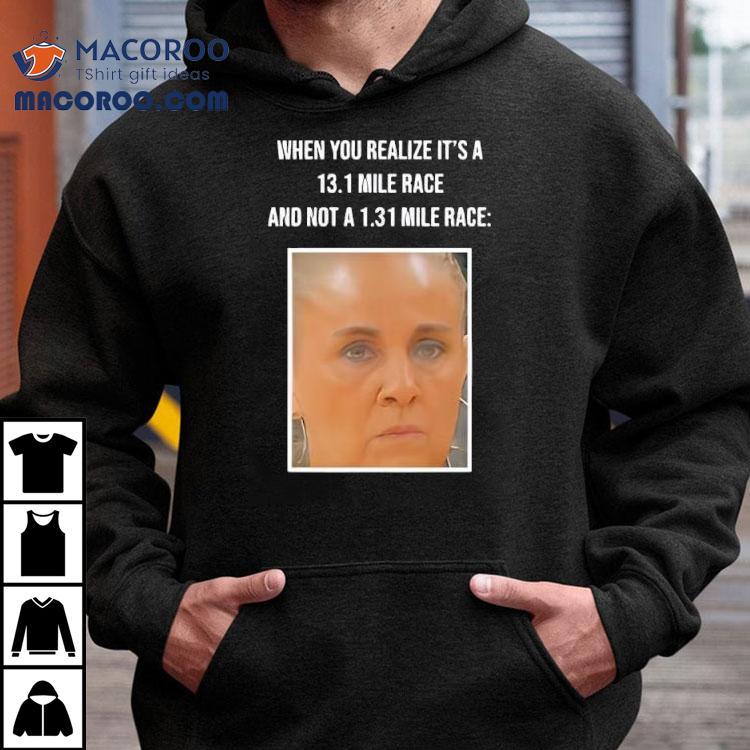 Wear it, love it, repeat with When You Realize Its A 13.1 Mile Race Shirt, as you lace up your running shoes and stretch for the upcoming race, you suddenly notice the number printed on your race shirt: 13.1 miles. The realization sets in that you're about to embark on a half marathon, a challenging feat that will push your physical and mental limits.
